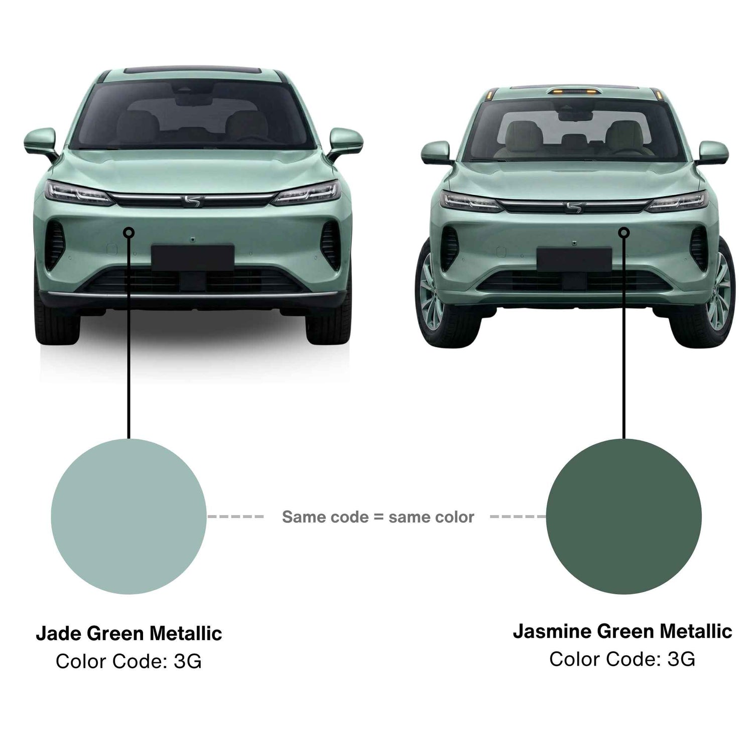 Often, a vehicle manufacturer will just use a new name to describe an old color. If you know your color is Jade Green Metallic (Color Code: 3G), and all you see on the screen is Jasmine Green Metallic (Color Code: 3G), these are the same colors. Again, the color code is how we mix the paint, not the paint description.